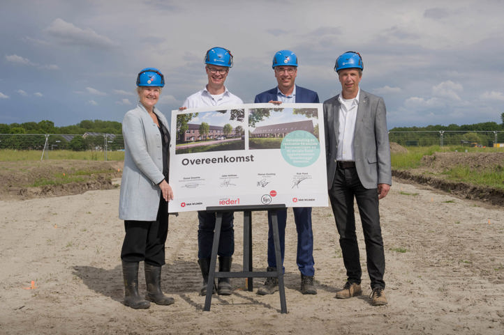 Op de foto: Joke Hofman - directeur-bestuurder Woonbedrijf ieder1, Gosse Dousma -directeur Van Wijnen, Rob Plant - vestigingsdirecteur Van Wijnen en Menno Oosting - directeur Fijn Wonen