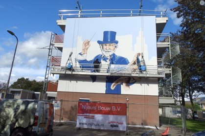 Voor de afsluiting van dit project wilden we de wijk en de bewoners iets bijzonders geven. Daarom hebben we gekozen voor een kunstwerk op de gevel, gemaakt door een lokale kunstenaar, Tanja Papez. Dit kunstwerk legt de verbinding tussen de stad Zutphen en de wijk Helbergen en staat voor de gezamenlijke inspanning van iedereen die betrokken is geweest bij dit project.